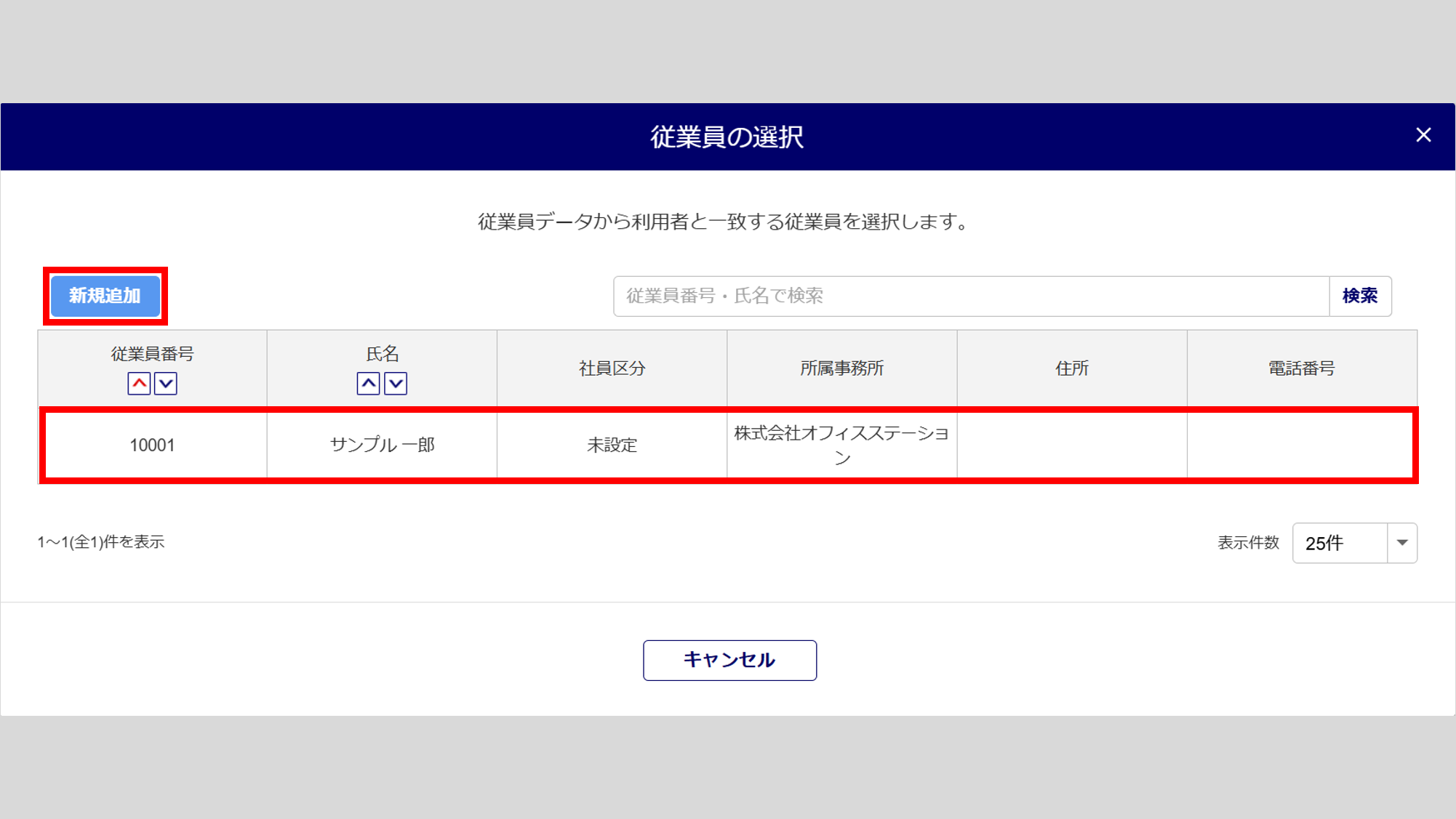 ※「台帳管理」に登録されている従業員を選択した場合は、「台帳管理」の情報を反映します。