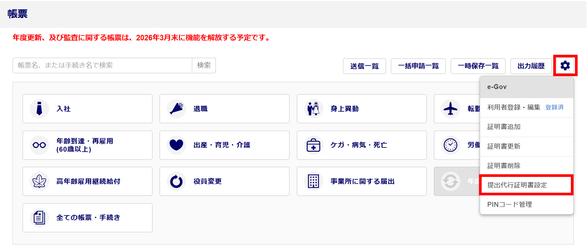 2103|【事務局】「提出代行証明書設定」方法