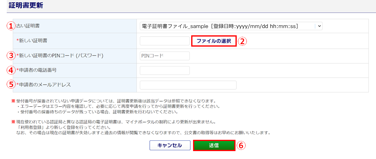 登録済みの電子証明書が有効期限切れとなり電子証明書を差し替える場合に使用します。