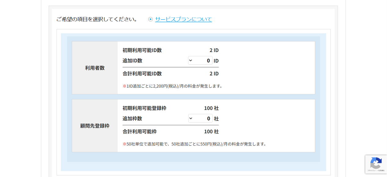 2名以上の追加をご希望の場合は、オプション(有償)の「利用者数:追加ID数」をお申込みください。