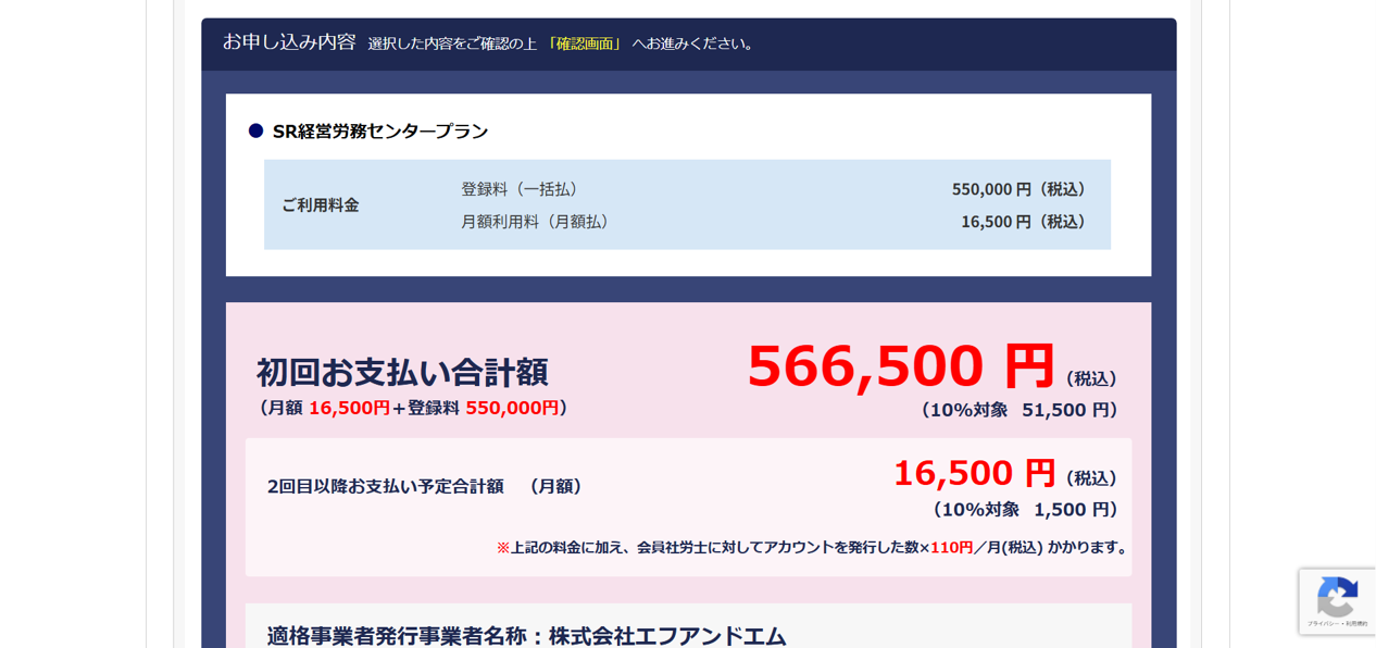 「お申し込み内容」および、「初回お支払い合計額」を確認します。