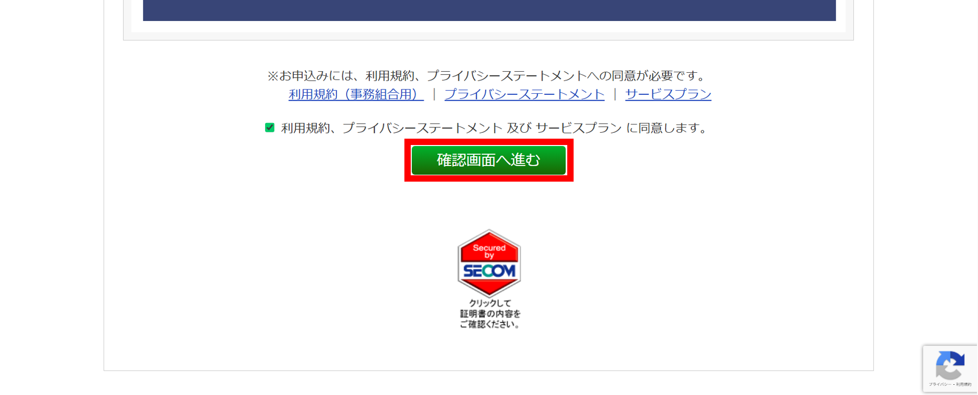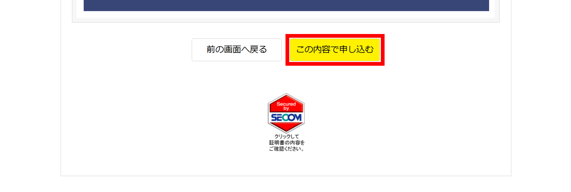 画面下部までスクロールし、[この内容で申し込む]をクリックします。