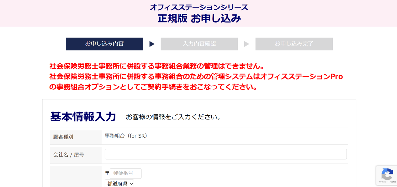 「オフィスステーション 事務組合 for SR」の申し込み方法について、ご説明します。