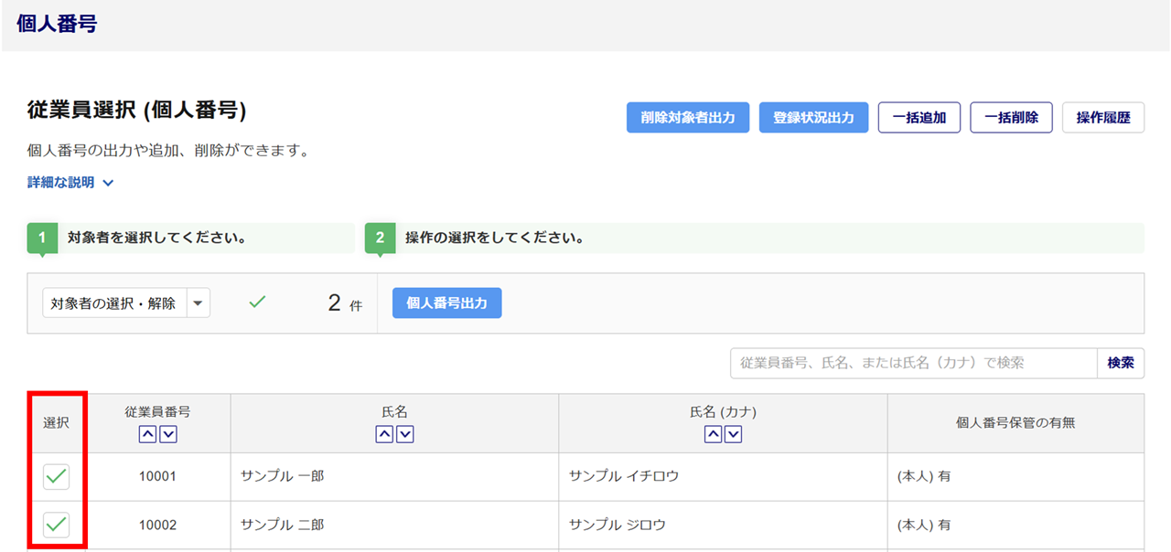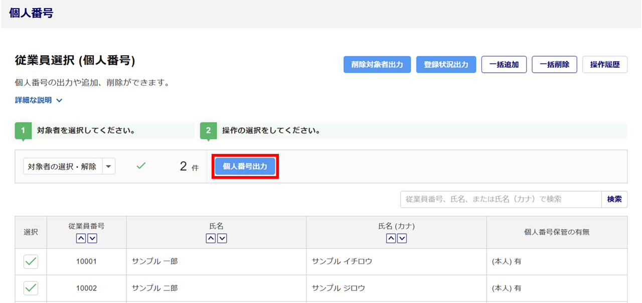 本マニュアルでは、複数名の従業員の個人番号を、CSVファイルに出力する方法をご説明します。