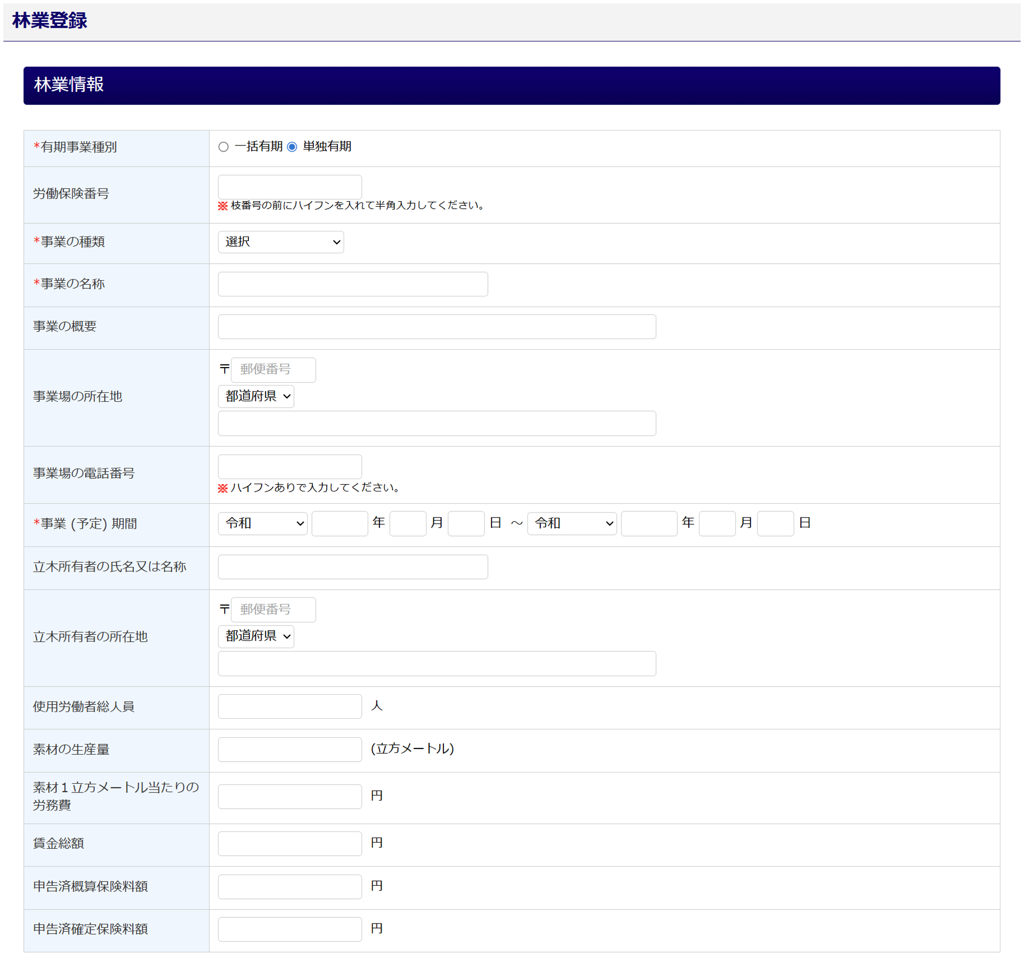 林業情報を入力します。各項目の詳細については、下表をご確認ください。