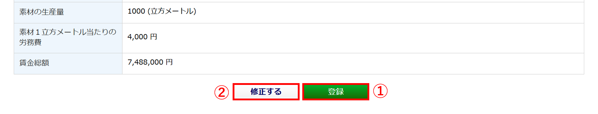 | 素材の生産量 | 素材の生産量を、立方メートル単位で入力します。 |