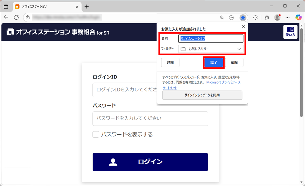 「オフィスステーション 事務組合 for SR」事務局用システムのログイン画面をブラウザのお気に入りに登録する方法をご説明します。