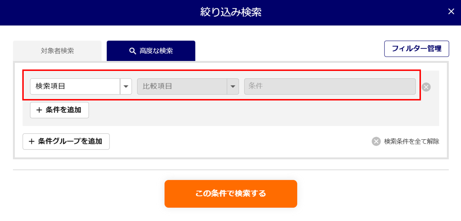 AND条件を追加する場合、[条件を追加]をクリックします。