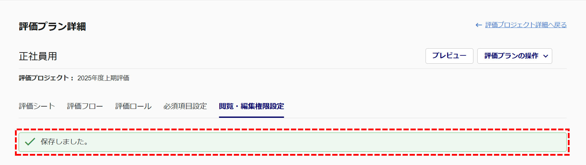「評価プラン詳細」の「閲覧・編集権限設定」画面が表示されます。