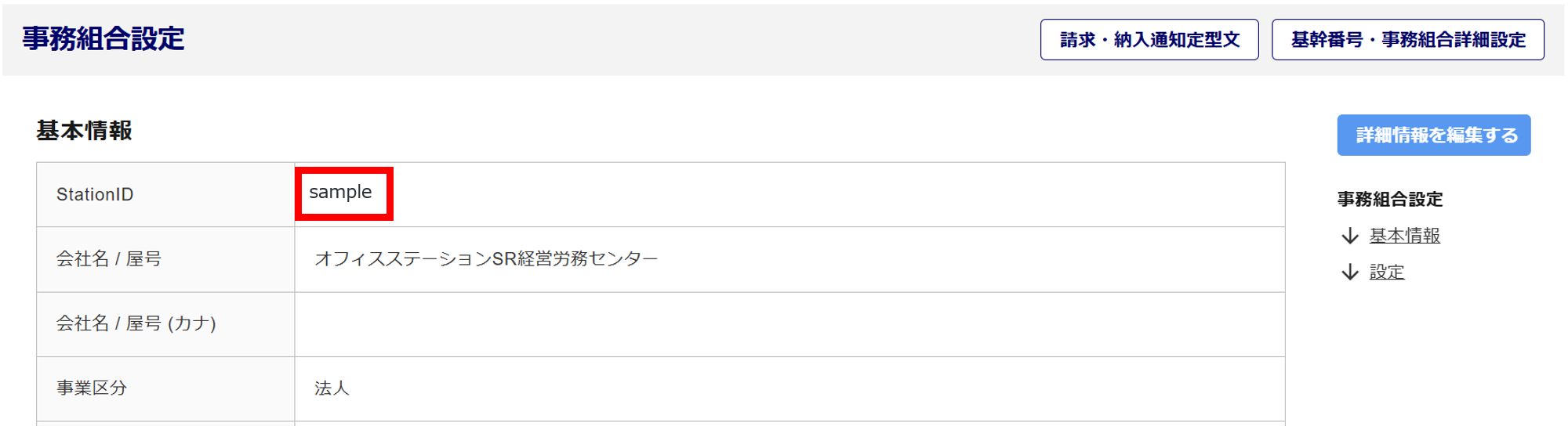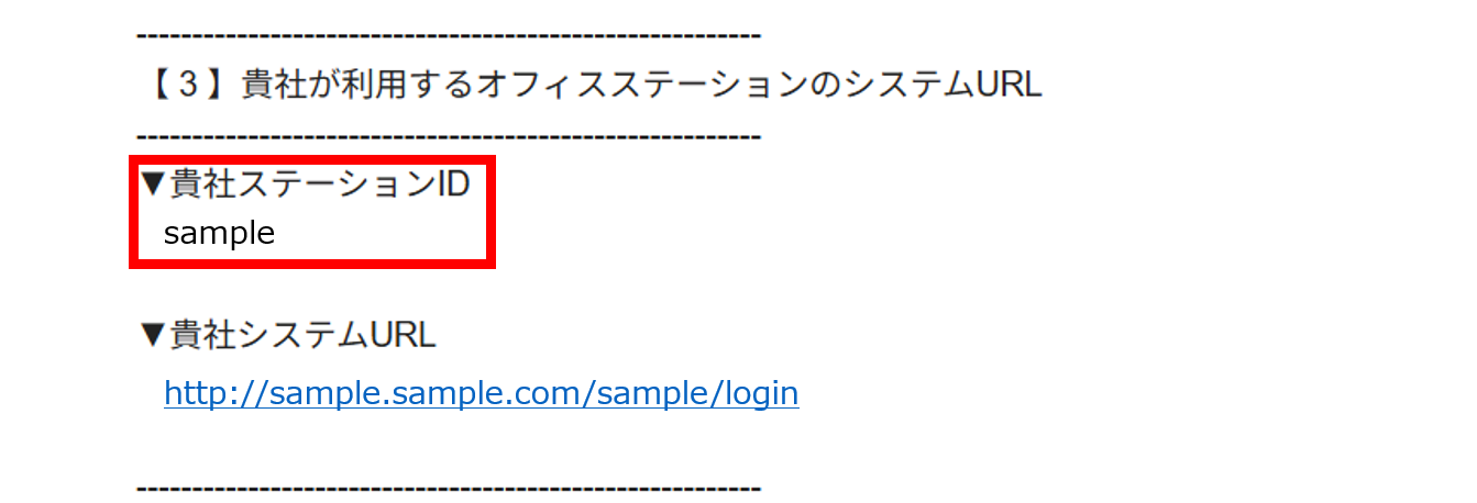 「【3】貴社が利用するオフィスステーションのシステムURL」内の「▼貴社ステーションID」に表示されている文字列が『StationID 』となります。