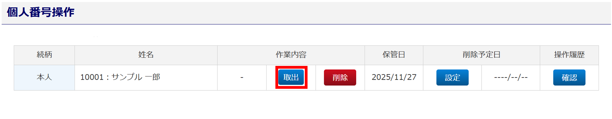 個人番号(マイナンバー)の取出