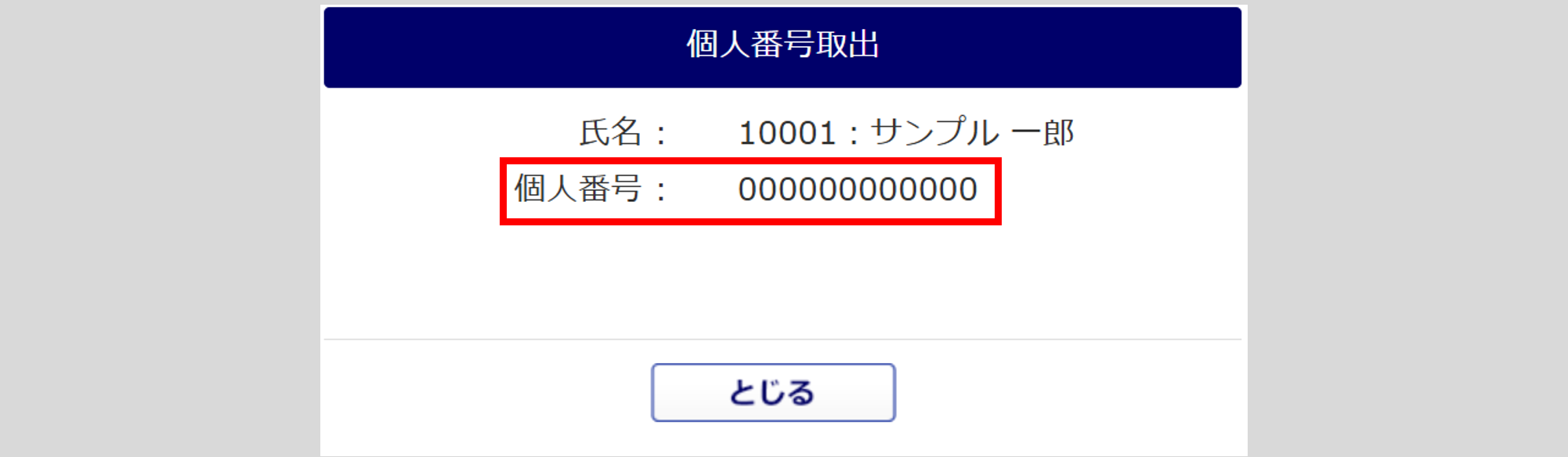 表示された画面にて、個人番号(マイナンバー)をご確認ください。