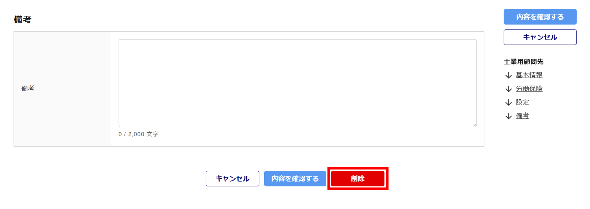 「顧問先管理」削除