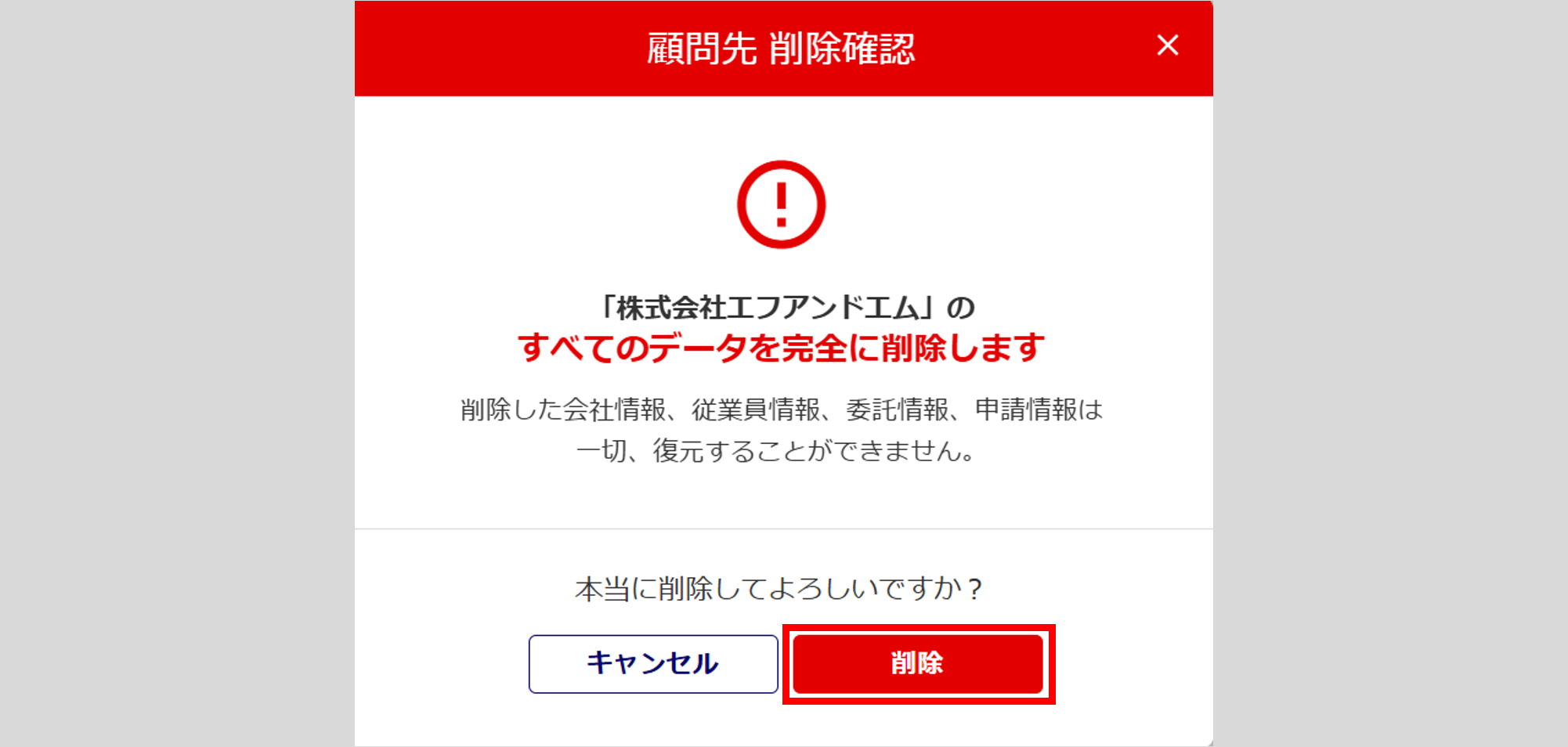 以上で、顧問先情報の削除は操作は完了です。