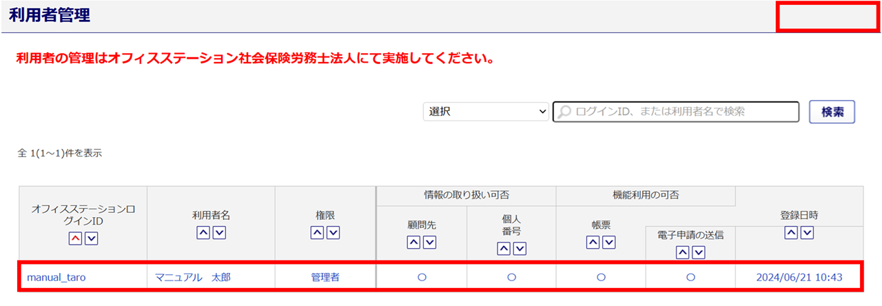 注意点事務組合機能のみを利用する利用者は、利用者情報の登録や編集はできません。オフィスステーション本体を利用できる管理者権限の利用者へ操作を依頼してください。