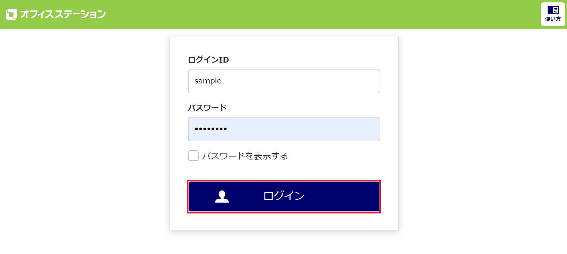 利用者のログインIDと、パスワードでログインします。