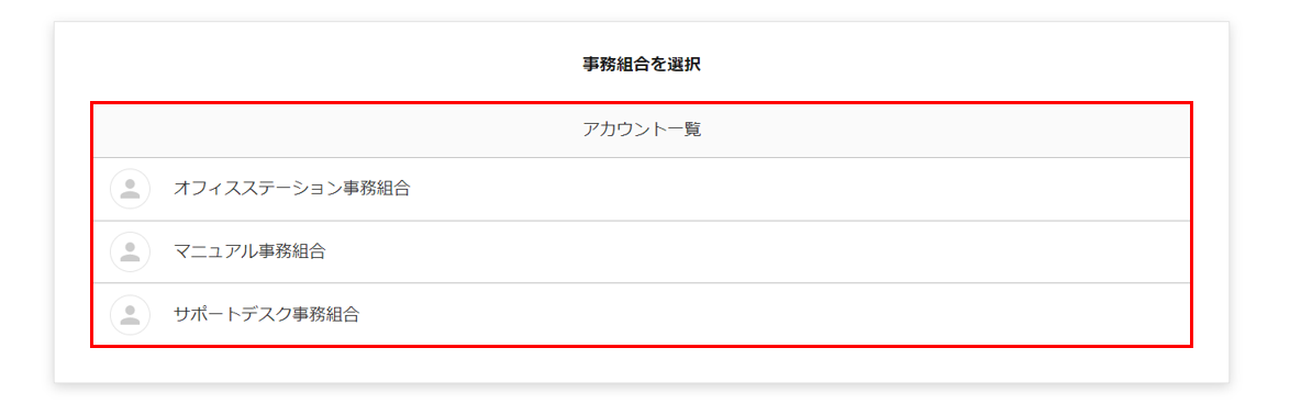 利用する事務組合が複数ある場合、事務組合の選択画面が表示されます。