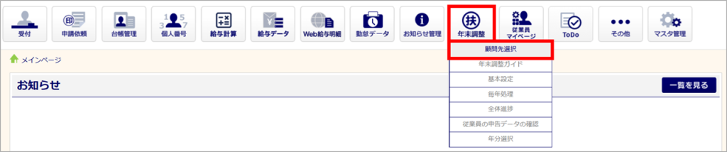 ※士業用顧問先に、「オフィスステーション 年末調整」のアカウント発行が必要。