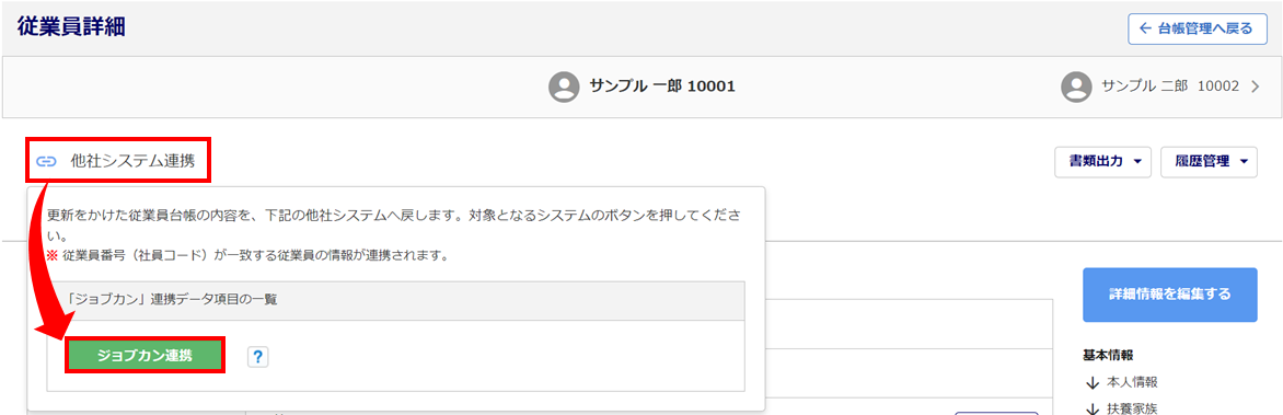 ジョブカンとの連携の事前設定については、以下の関連記事をご参照ください。