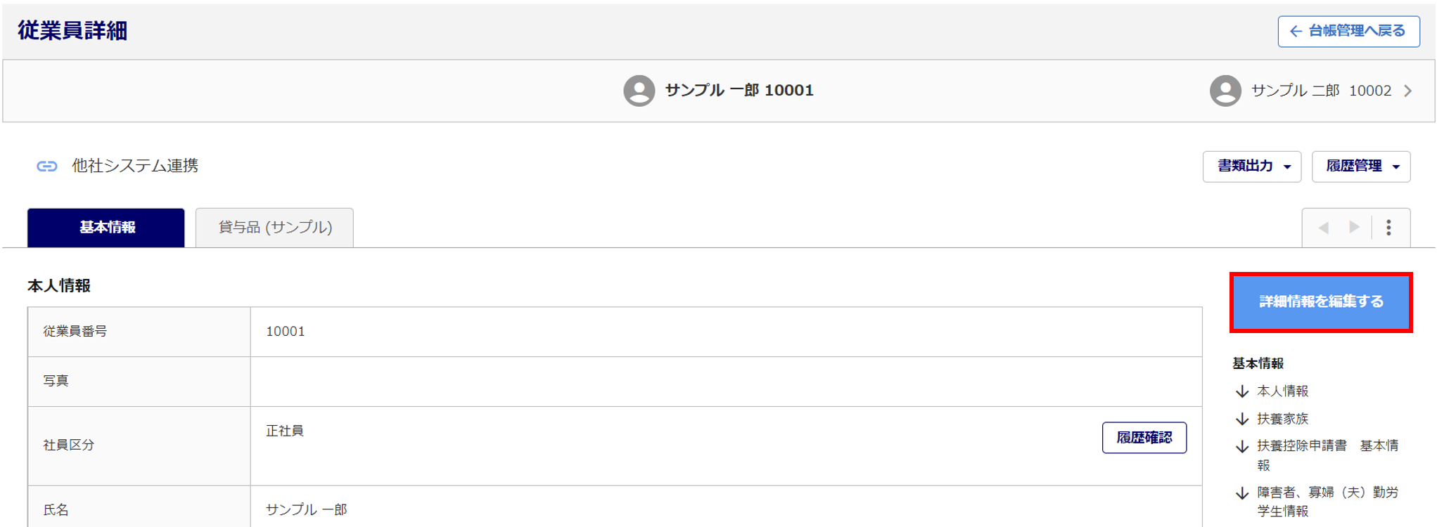 従業員台帳「基本情報」カテゴリに対して閲覧制限のある利用者の場合、本機能の操作はおこなえません。