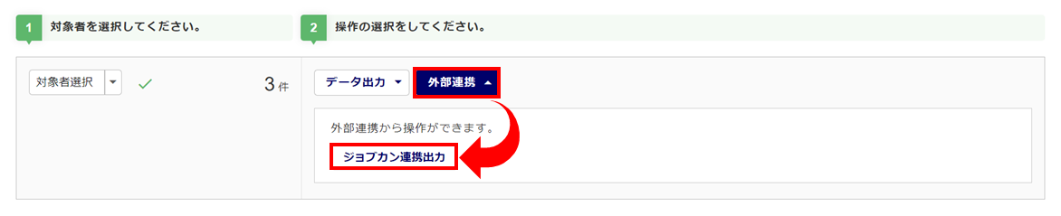 [外部連携]>[ジョブカン連携出力]をクリックします。