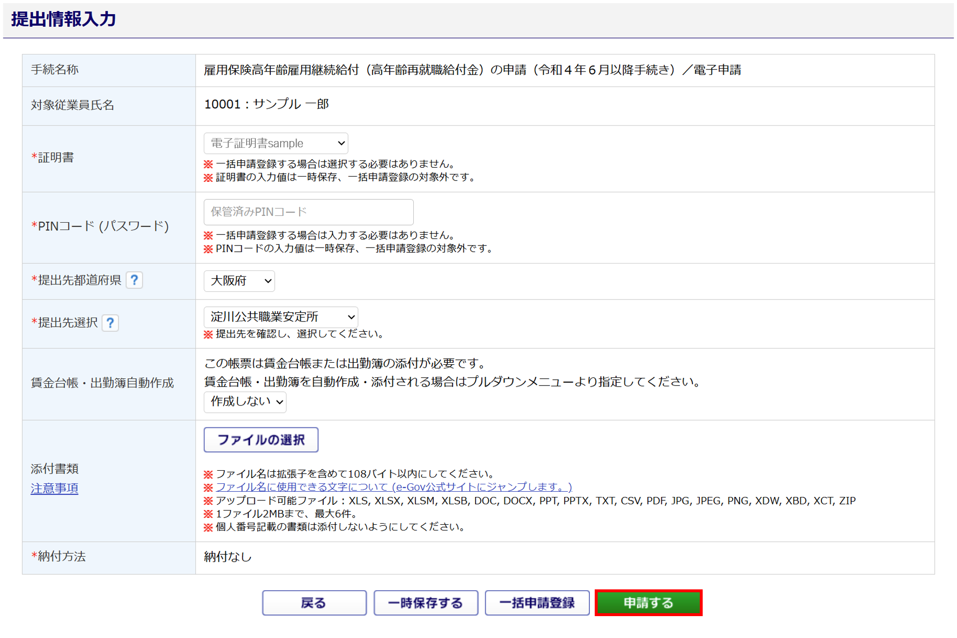 本帳票は、2回目以降に高年齢再就職給付金を取得する際に申請します。