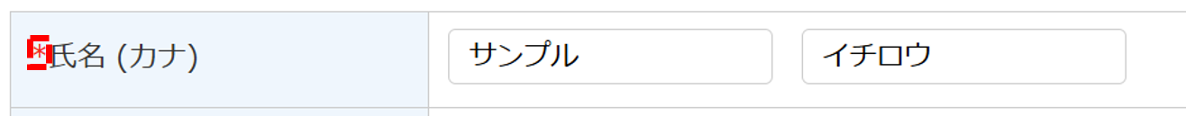 氏名 (カナ) : (姓カナ)・(名カナ)合わせて最大20文字(スペースを含む)