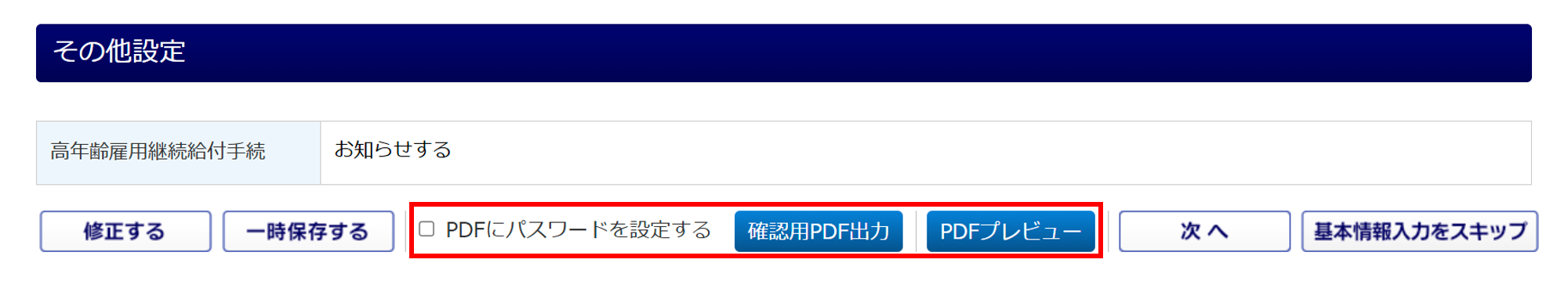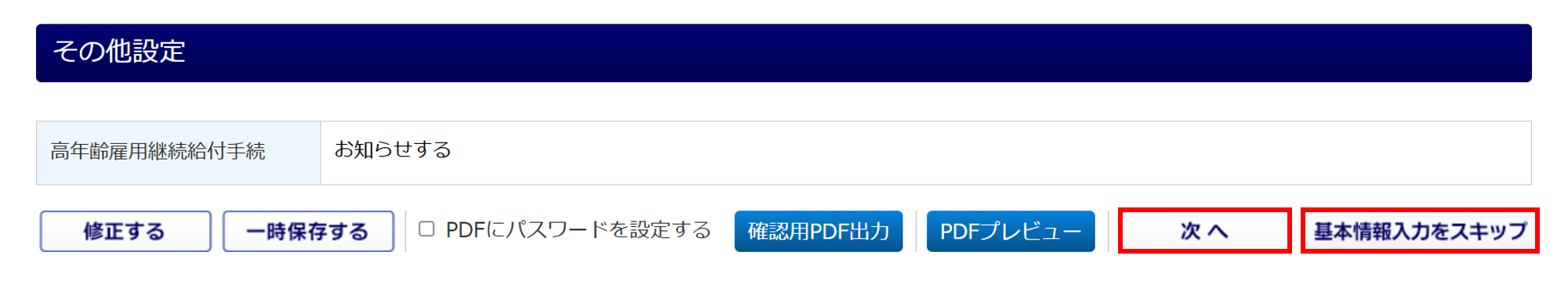 「高年齢雇用継続給付手続」については、以下の補足をご確認ください。