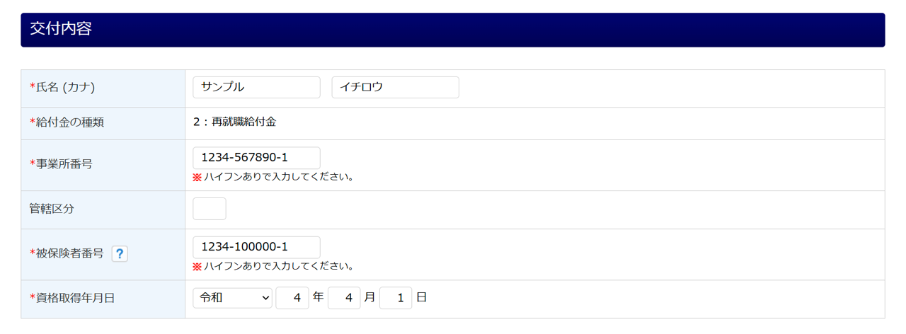 | 支給対象年月日 | 再就職給付金の支給対象年月日を入力します。 |