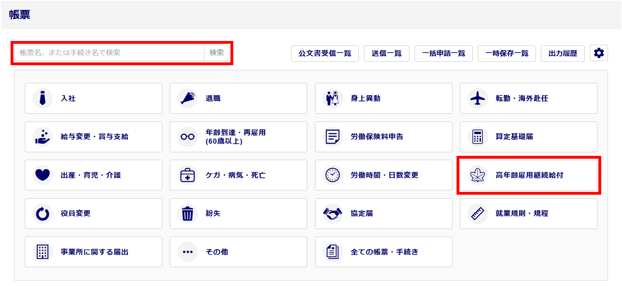 または、[高年齢雇用継続給付]をクリックします。