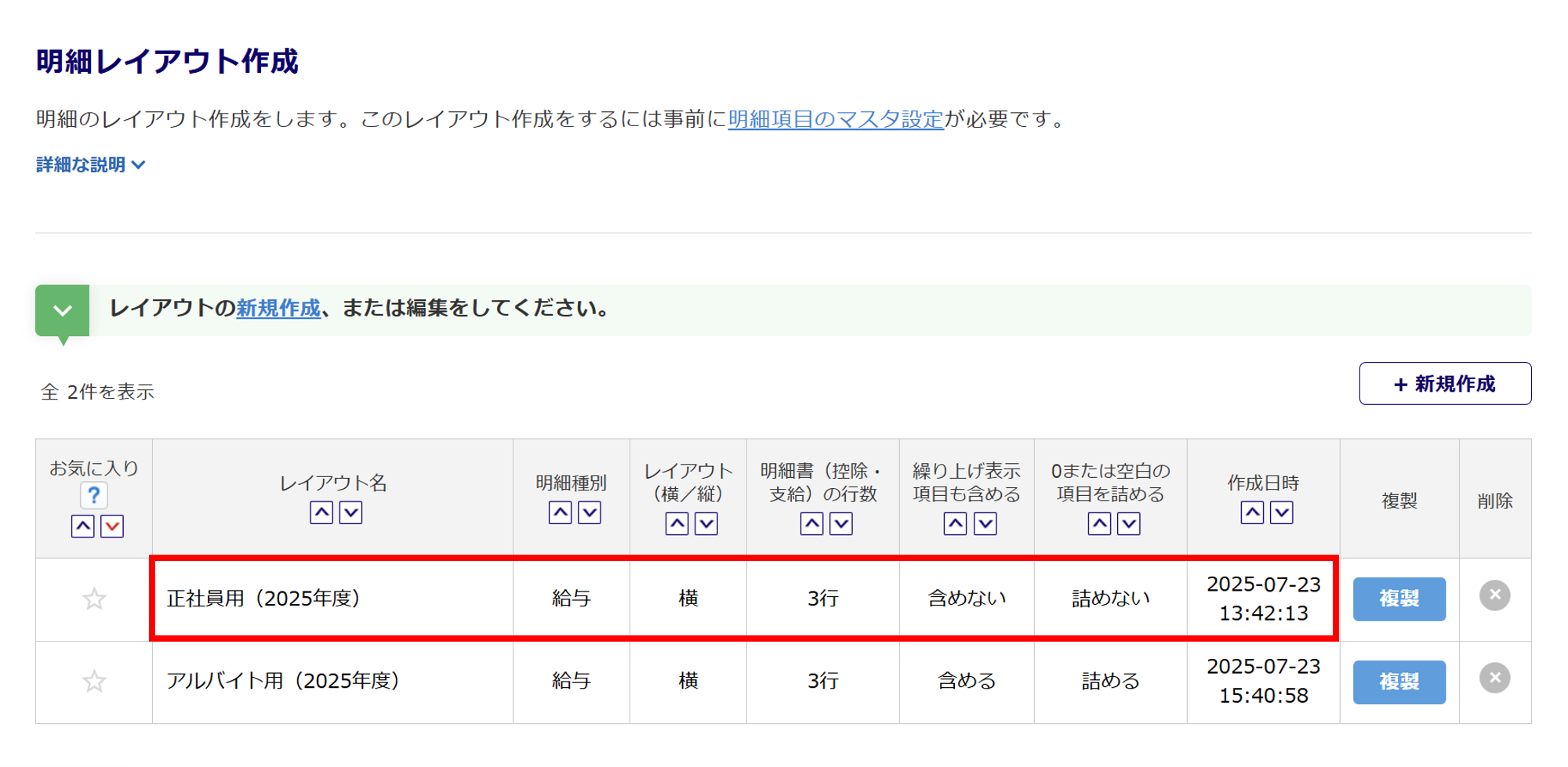 [明細レイアウト作成]で設定する場合