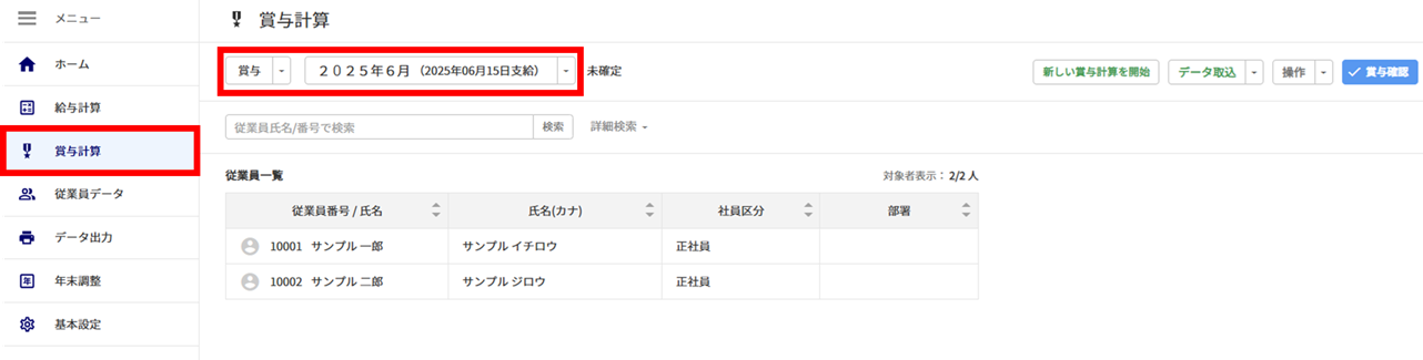 入力完了後は、給与確認(賞与確認)、給与確定(賞与確定)と操作をおこなってください。