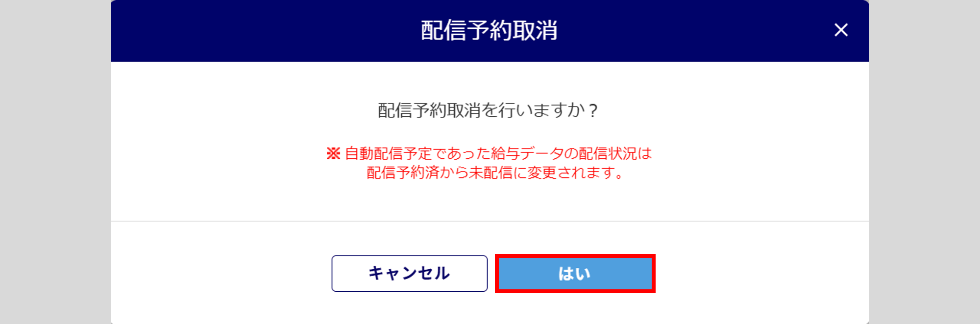 ※自動配信予定であった給与データの配信状況は、「配信予約済」から「未配信」に変更されます。