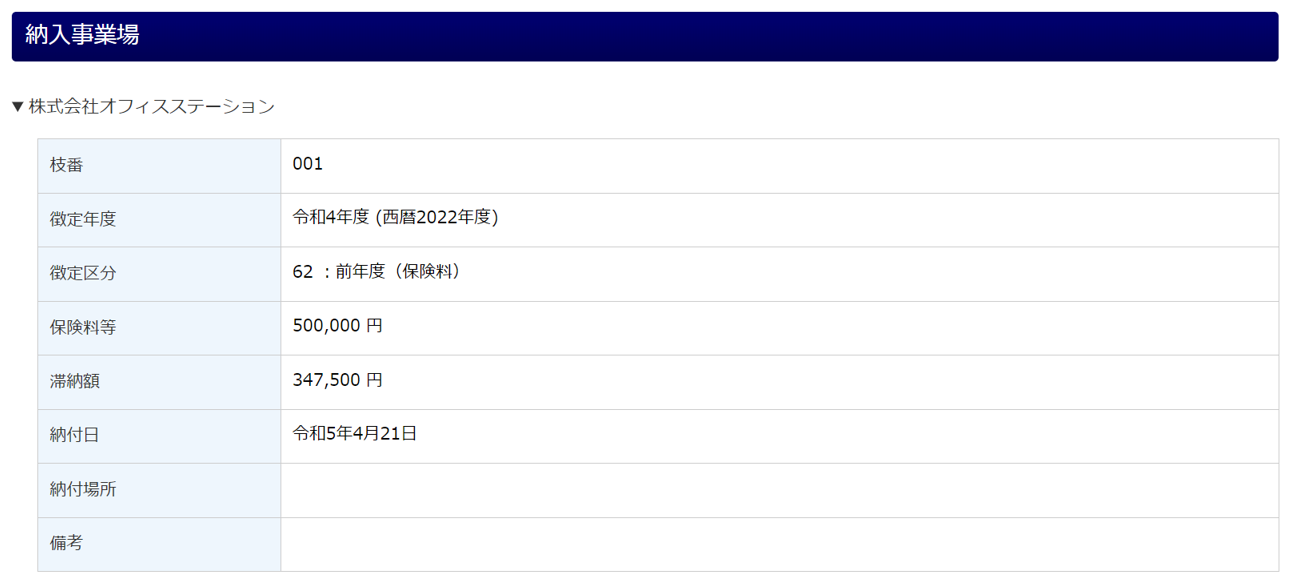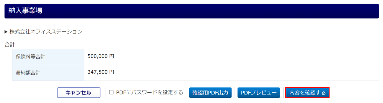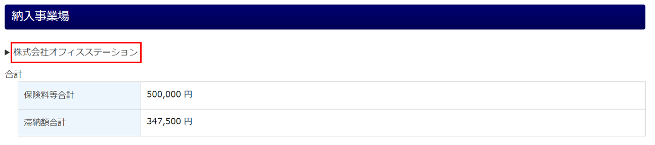 事業場名(ここでは「株式会社オフィスステーション」)をクリックすると、事業場の納入情報を確認できます。