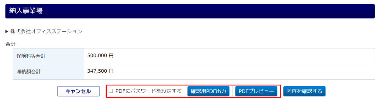 作成した帳票をPDFに出力して確認する場合は、[確認用PDF出力]をクリックします。