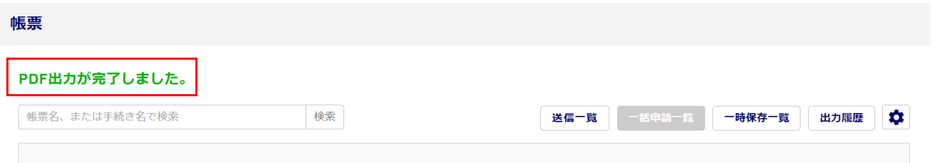 画面左上に「PDF出力が完了しました。」と表示されたら完了です。