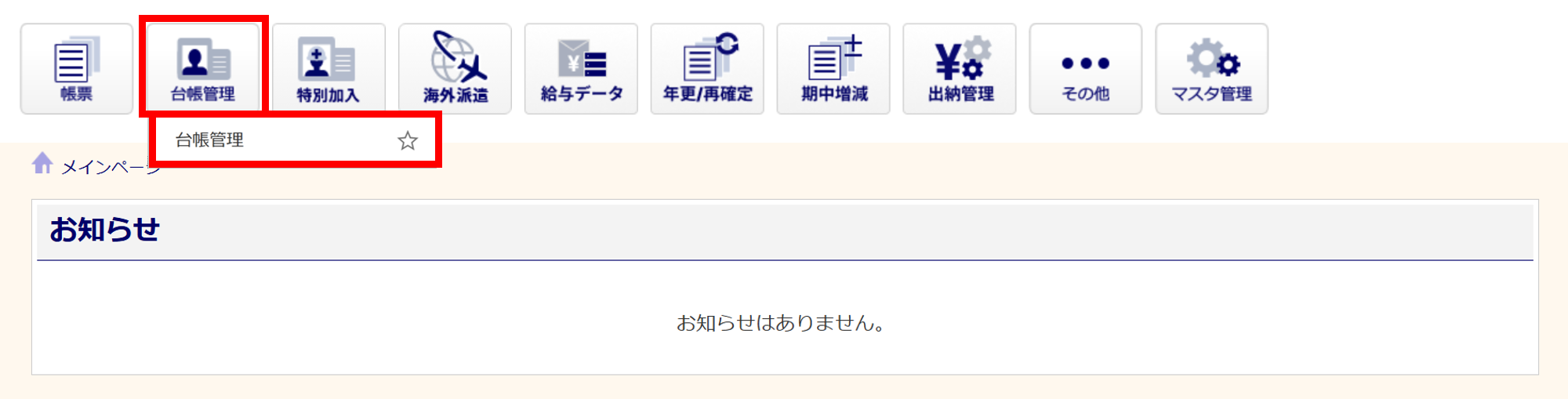 [台帳管理]>[台帳管理]をクリックします。