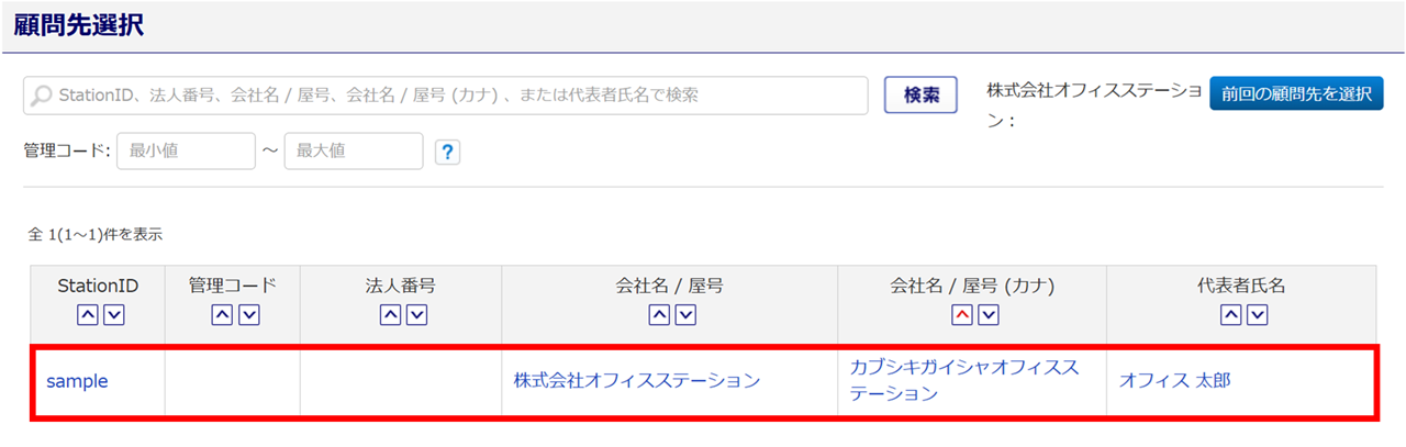 「顧問先選択」画面が表示されます。