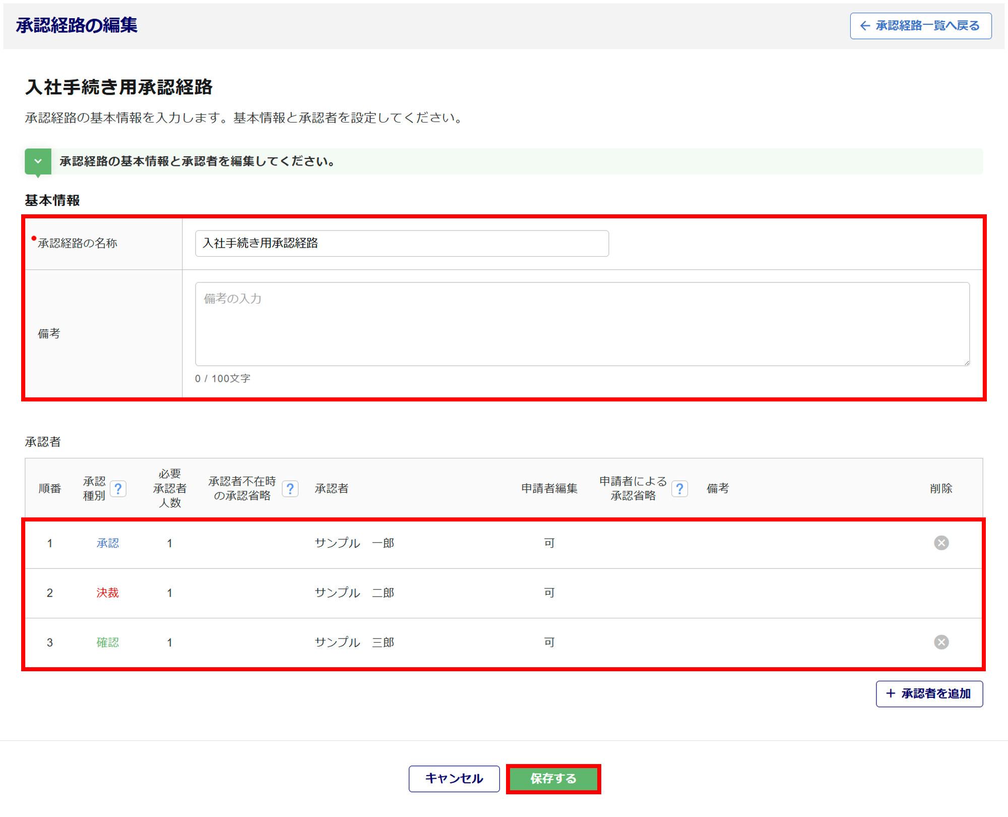登録済みの承認経路を個別に編集する方法について、ご説明します。