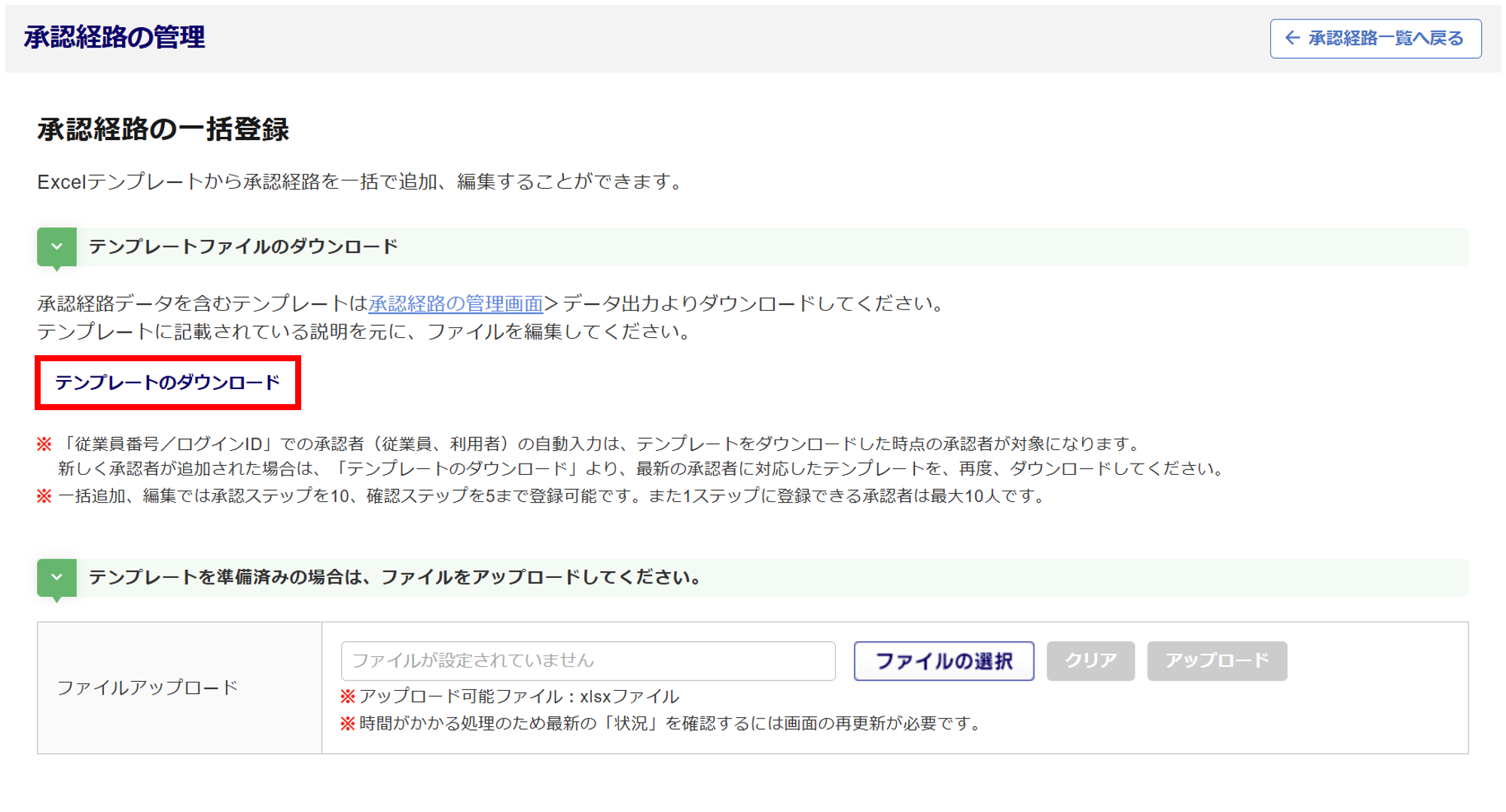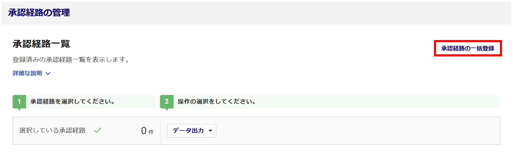 一括登録をする場合、承認者を部署・役職で設定することはできません。