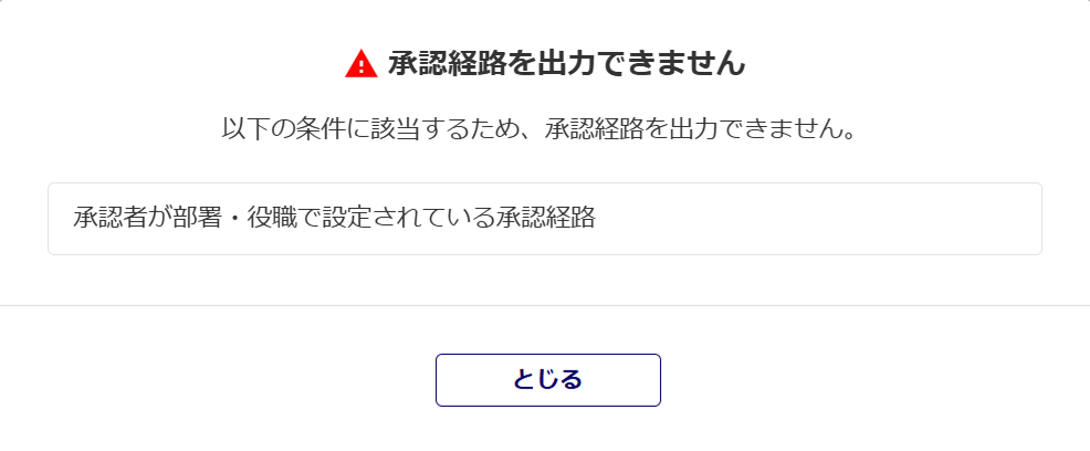 承認経路の設定が以下に該当する場合、下図が表示され、出力することができません。
