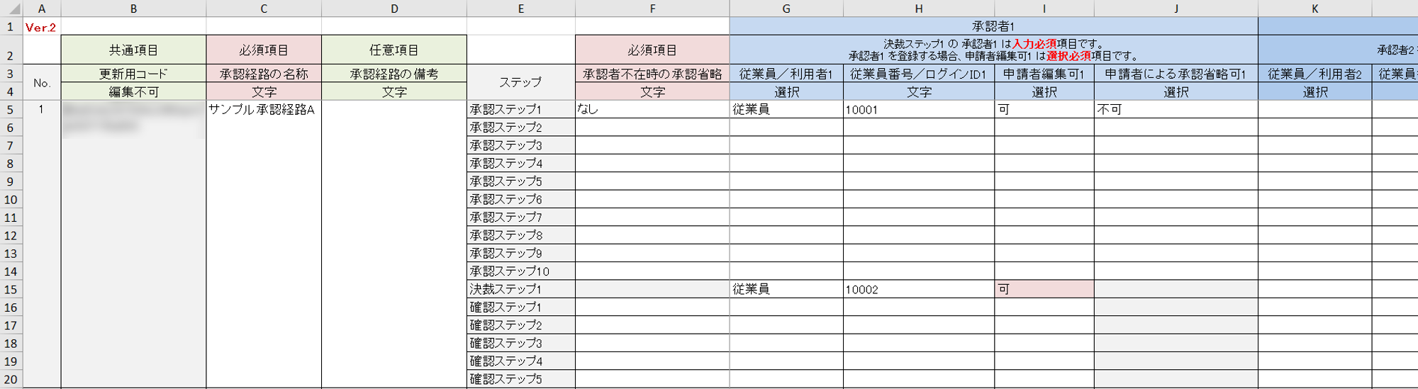 出力したファイルを用いて、承認経路の追加や編集をおこなうことができます。