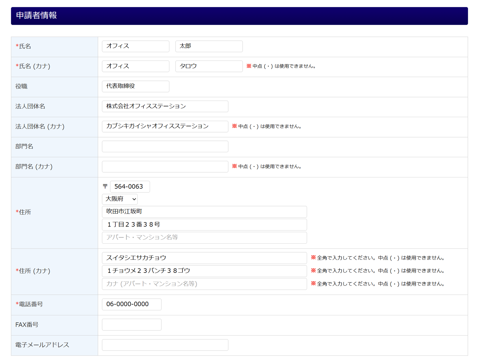 電子申請の際に表示される「基本情報入力」画面の入力方法について、ご説明します。
