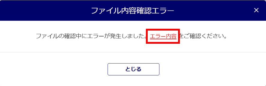 ファイルに問題がある場合、「ファイル内容確認エラー」画面が表示されます。