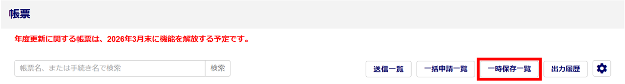画面右側の[一時保存一覧]をクリックします。