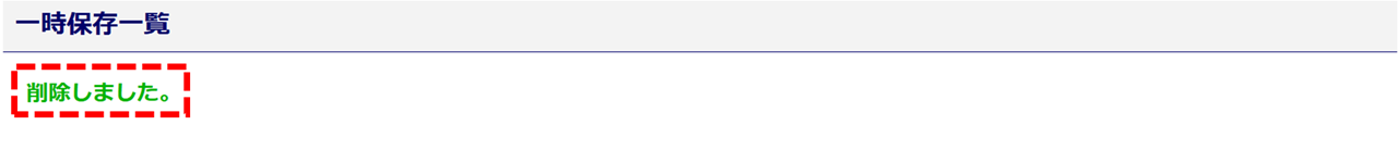 「一時保存一覧」画面にて、削除するデータの[削除]をクリックします。