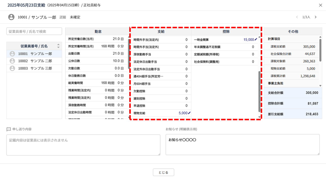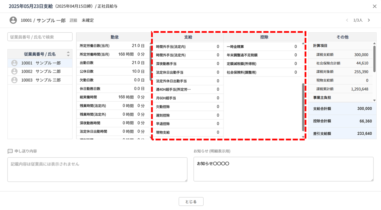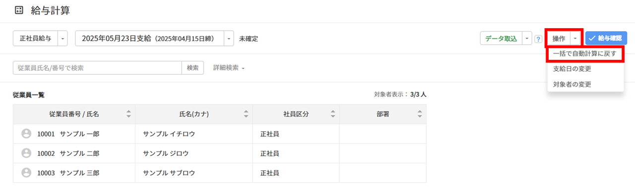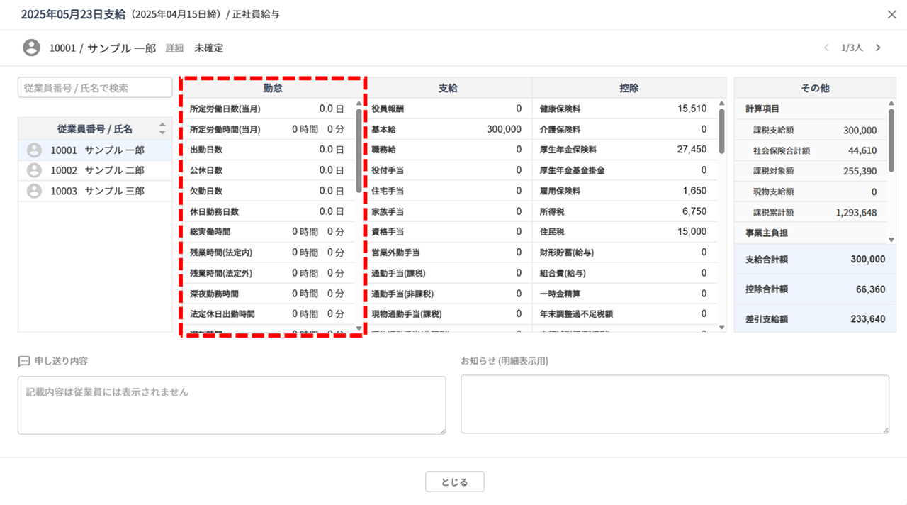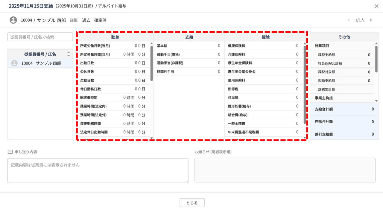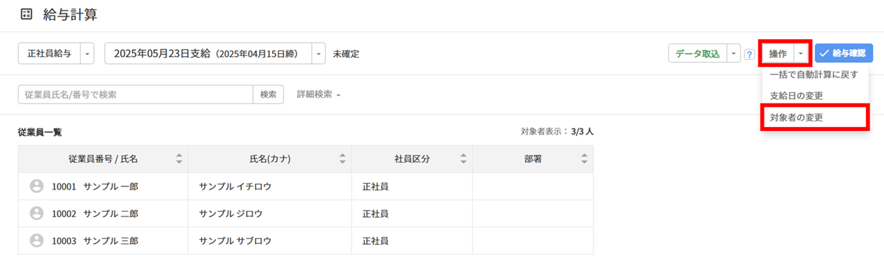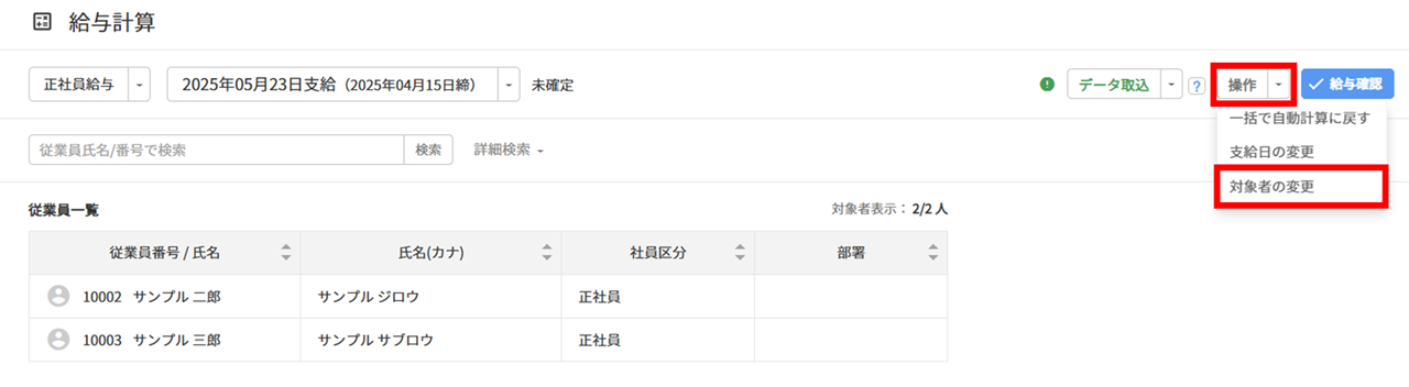 従業員一覧に表示されている従業員すべてが対象です。対象従業員を指定することはできません。