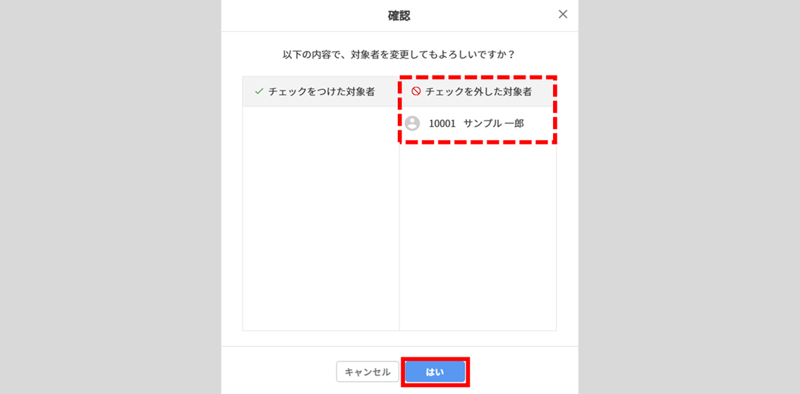 ※ここでは「10001 サンプル 一郎」のチェックを外します。