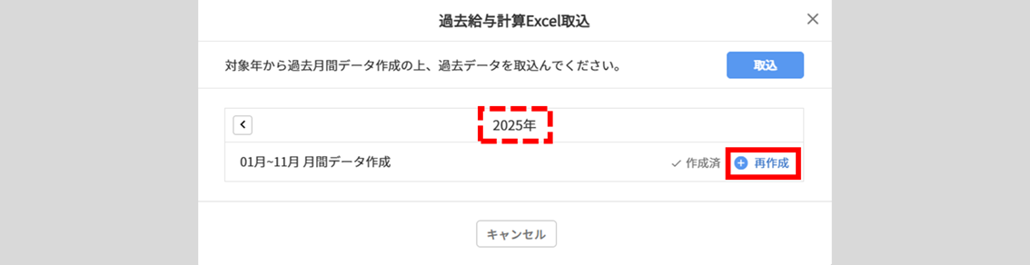 [過去給与計算Excel取込]で取り込んだ過去給与計算データを削除します。