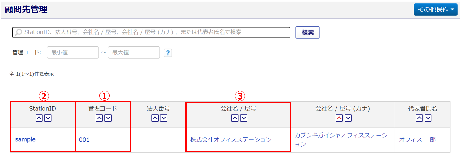 管理コード 顧問先情報を管理するために任意で設定した文字列です。